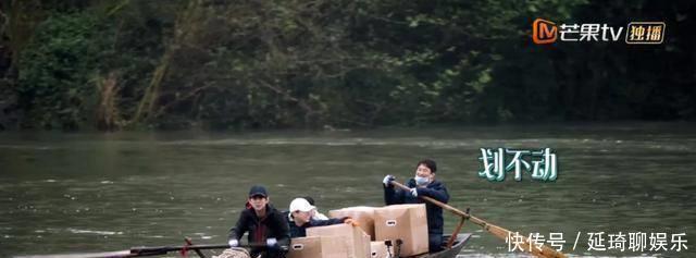 莫得车,黄磊、何炅、张子枫和彭昱畅必须划着划子运物质去对岸,划到一半,黄磊和何炅就没力气了。