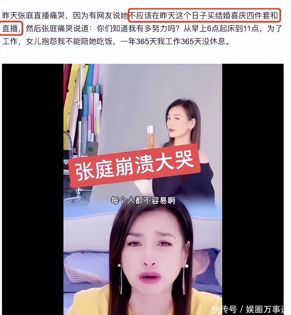 尤其是张庭在直播间中哭诉说一年有365天她要职责356天,就连陪孩子的契机齐莫得。