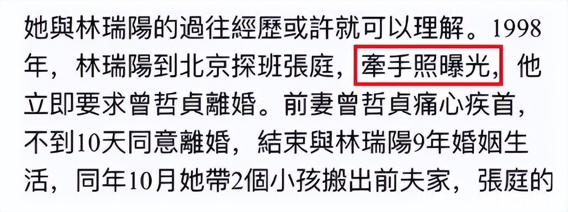 那时在1997年拍摄《金色夜叉》意识了林瑞阳,据两东说念主节目中清楚,林瑞阳在看到张庭的第一眼就深深的爱上了她。